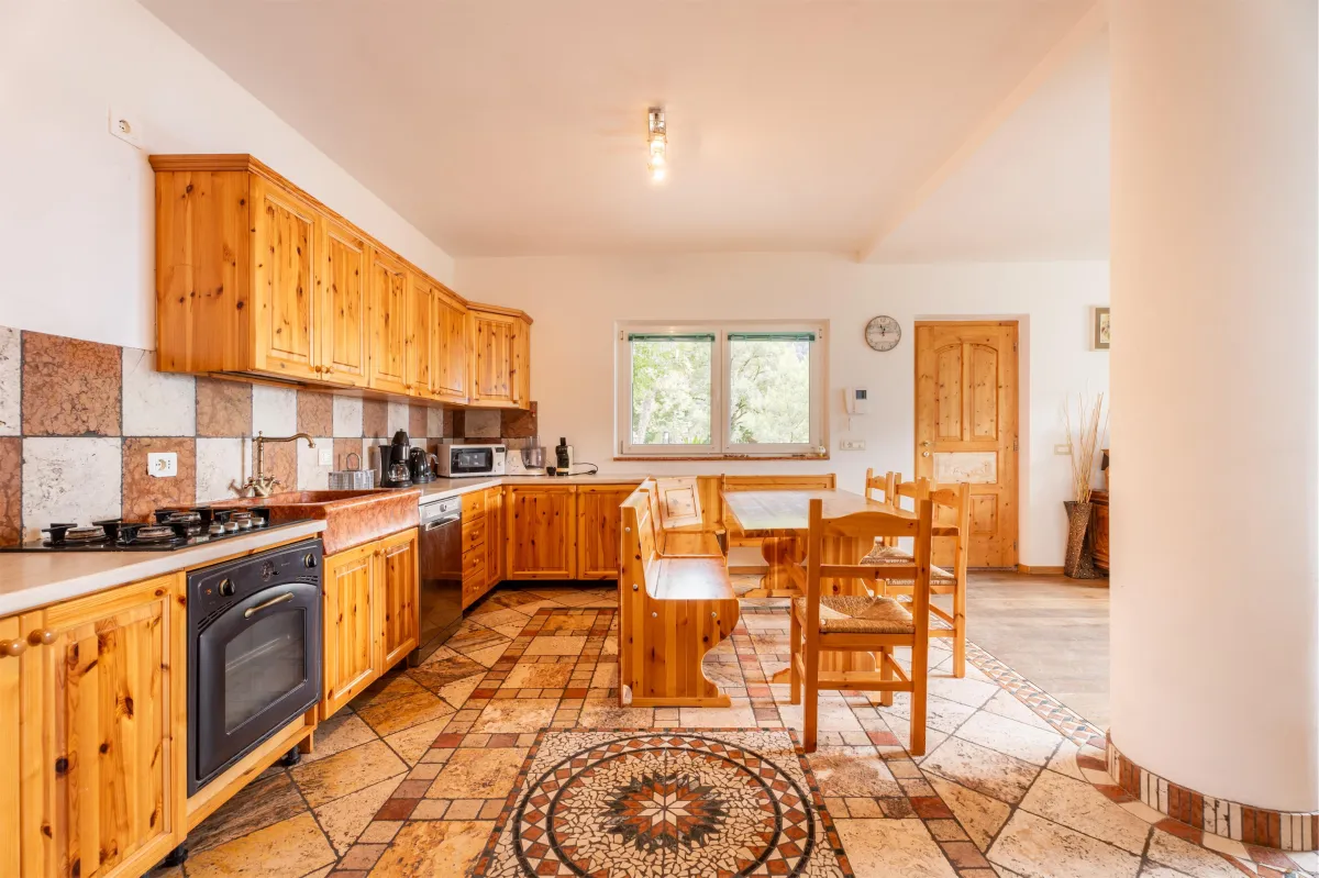 Una villa spaziosa di 138 m² con tre camere matrimoniali, due bagni e un ampio soggiorno con cucina moderna. Dalla terrazza e dal balcone si gode una splendida vista sul Lago di Tenno e sulle montagne circostanti.